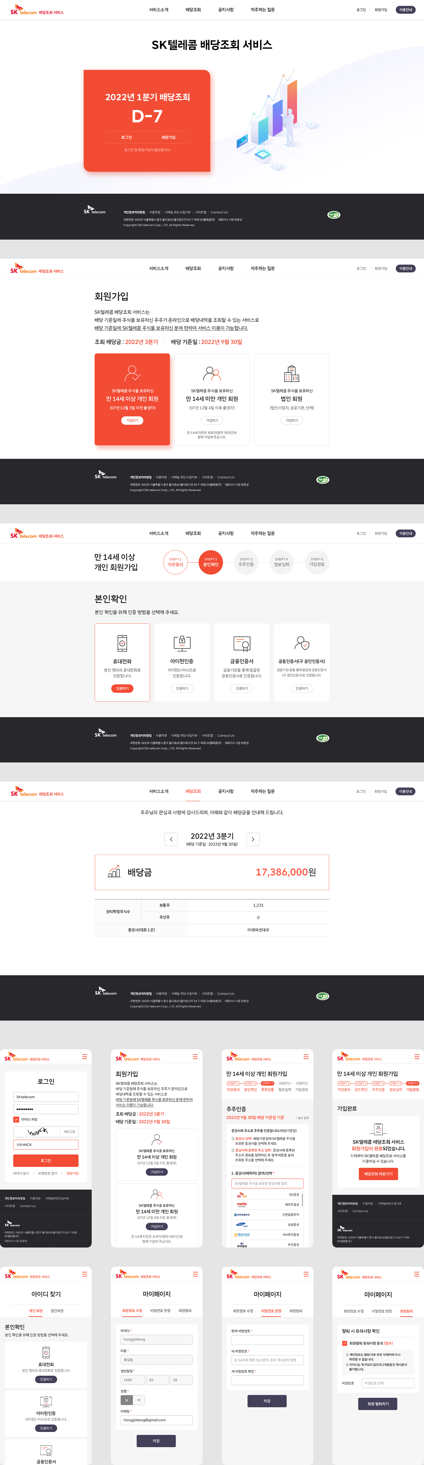 SK텔레콤이 주주에게 제공하는 배당금 조회 전용 온라인 시스템의 UI/UX를 담당했습니다.